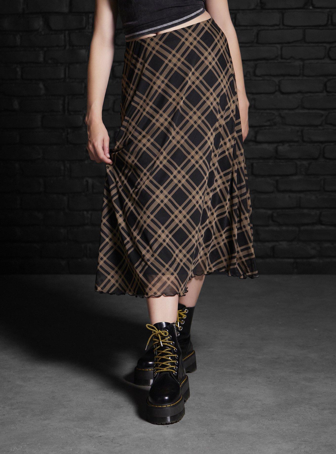 Product Name: Dark plaid midi skirt 2025