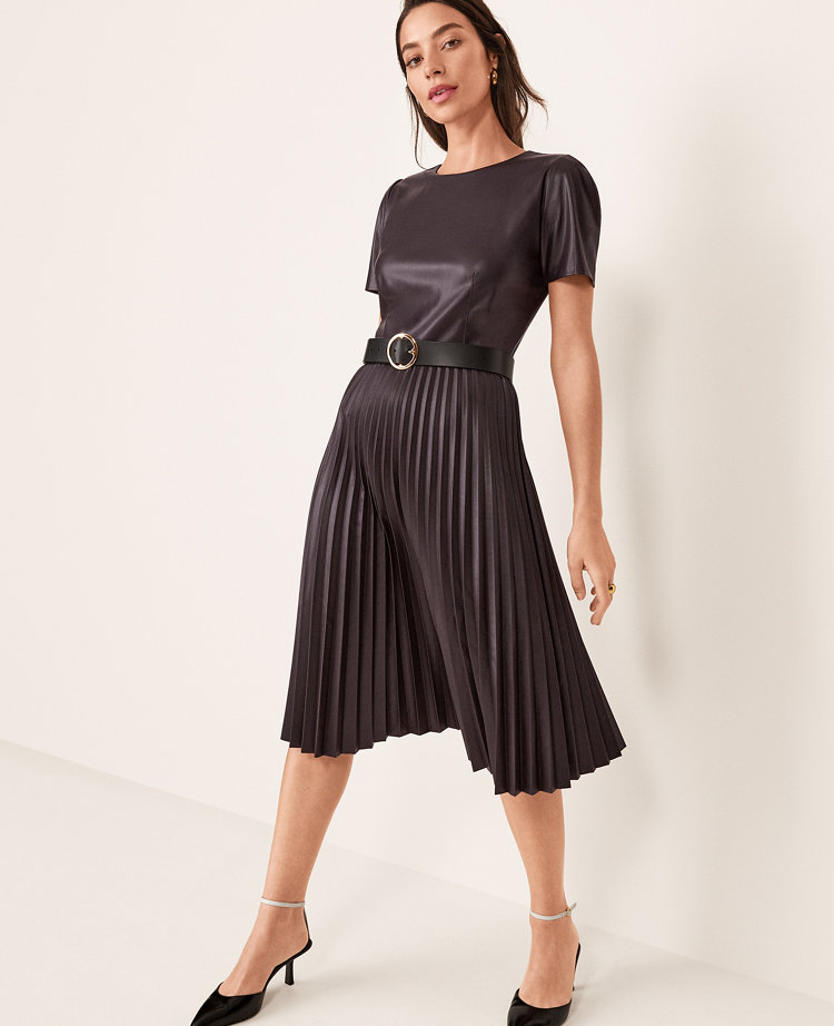 Product Name: Leather dress with pleated skirt 2025