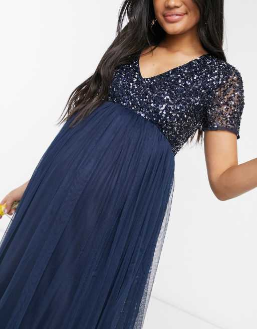 Product Name: Maternity v neck maxi tulle dress with tonal delicate sequins 2025