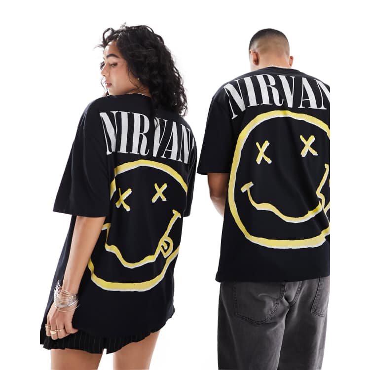• ASOS DESIGN unisex oversized license band t shirt in black with Nirvana prints ASOS