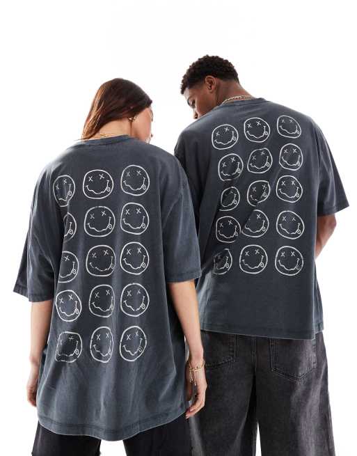 ASOS DESIGN unisex oversized license t shirt with Nirvana print and bleaching in charcoal CHARCOAL