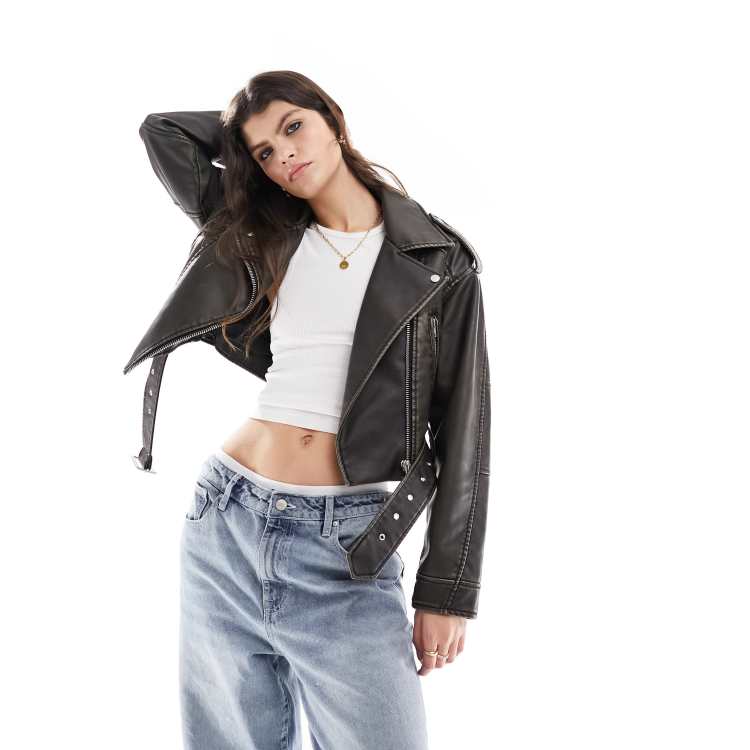 Product Name: Asos cropped leather look 80's biker jacket 2025